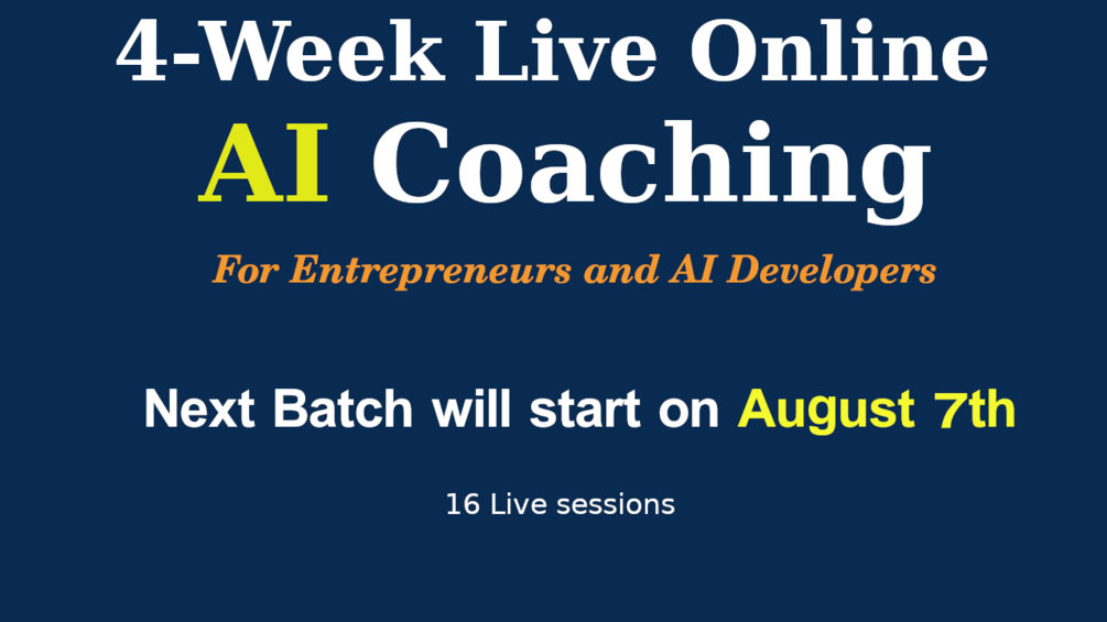 I have decided to launch this 4-week program after spending a lot of time creating my AI Course with more than 8 hours of recorded videos and 8 ebooks related to AI. Though recorded courses can help to some extent, I understand that Live coaching will be the most effective way of learning AI. You can make use of this opportunity now, and tell your friends also. To keep the coaching effective, I will stop the registration after a certain number of people join this program. So, act now if you want to join this program.
